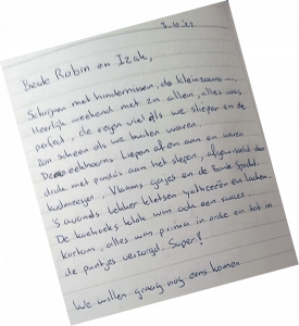 Bedankt voor een heerlijk widweekje in jullie huisje.
